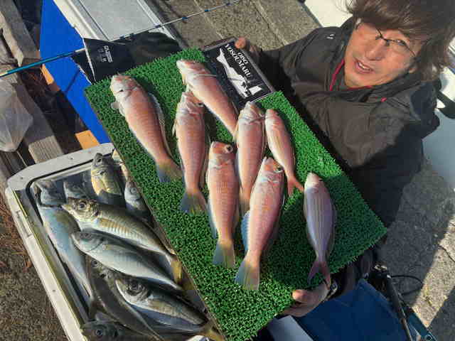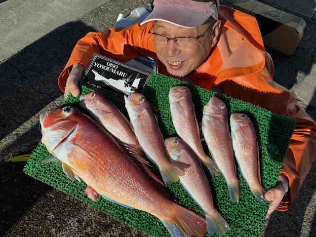 アマダイ | 20〜43 | 1〜11 | 大磯沖60〜100m 中盤から中型が続いて上がる場面有り、粒揃いでゲットされた方も!! 攻めてみましたが大型はヒットならずでしたが、その中でどうにか43cmの良型が上がりました!! 他に、ヒメコダイ・キダイ・オニカサゴ・カナガシラ・小アラ |