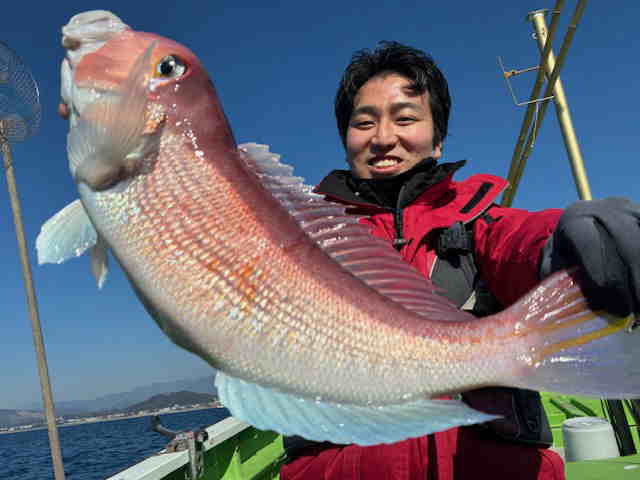 | 2月21日(土) アマダイ船 ![]() レンタル道具で挑戦!バッチリ大型浮上! アカアマダイ 51cm 1.5kg!! |