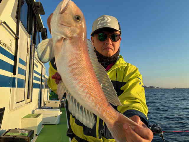アマダイ | 20〜43 | 1〜11 | 大磯沖60〜100m 中盤から中型が続いて上がる場面有り、粒揃いでゲットされた方も!! 攻めてみましたが大型はヒットならずでしたが、その中でどうにか43cmの良型が上がりました!! 他に、ヒメコダイ・キダイ・オニカサゴ・カナガシラ・小アラ |