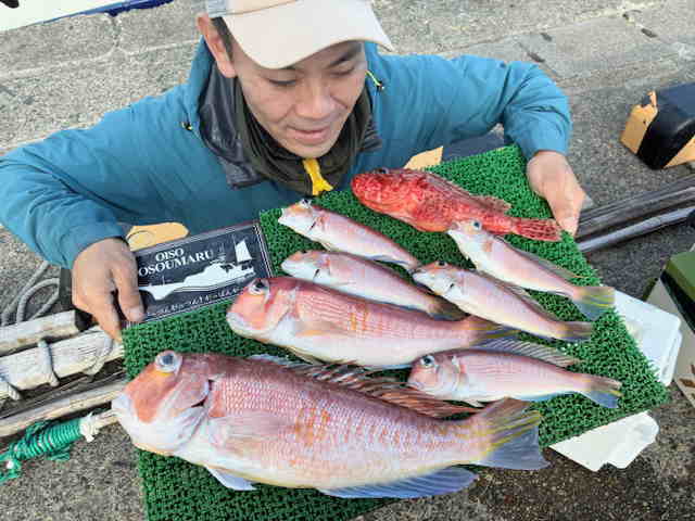 22〜38 | 0〜 9 | 大磯沖50〜115m 他に、ヒメコダイ・キダイ・オニカサゴ・小アラ・小アジ多数 潮流れ有り、美味しい外道混じりにゲット!!本命のサイズは中型主体でした!! 本命ゲットならず1名様 |