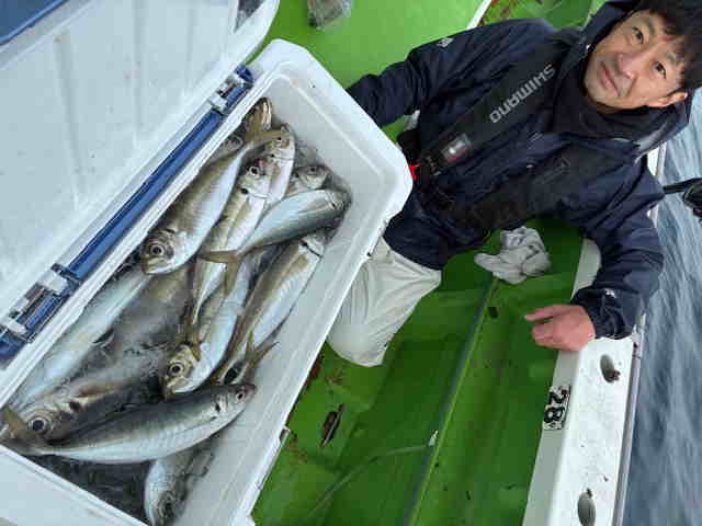 アジ | 24〜38 | 24〜32 | 瀬の海96〜165m 他に、サバ 水深深めな為、数の伸びは緩やかだったものの、時折ダブルも見られながら当たり自体は順調でした!! サイズも良型中心で釣り味抜群でした!! 1グループ様のみ乗船、お客様の希望により13時15分沖上がり |