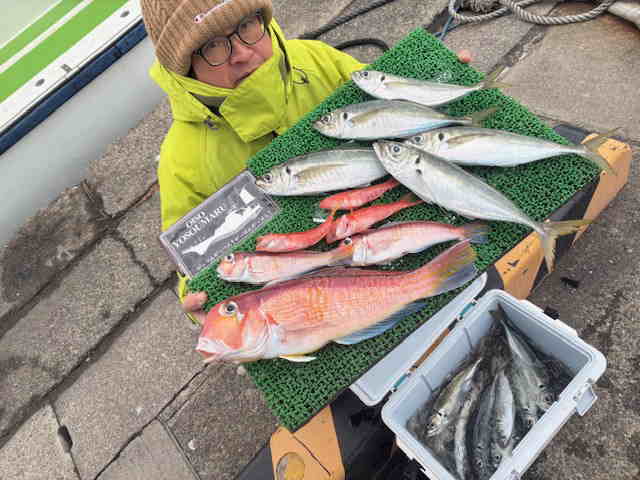 | 2月 5日(木) アジ&アマダイリレー船 ![]() アジ!良型主体でした! アマダイ!中型主体で揃えた方も! |