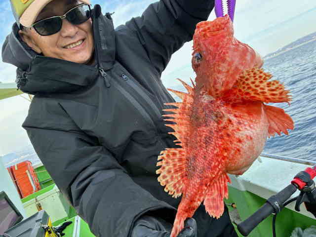 | オニカサゴ | 25〜40 | 1〜 5 | 瀬の海90〜140m 左記オニカサゴの内 40cm×1匹・38cm×1匹 他に、ウッカリカサゴ・ユメカサゴ 後半にサイズが上振れた感有り、40UPもゲット出来ました!! リレー船の為、10時からの釣果 |