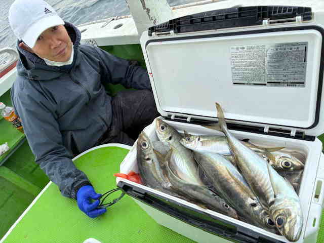 アジ | 22〜38 | 7〜21 | 瀬の海110〜115m 他に、サバ 魚の動き活発傾向で、安定した当たり方にはなりませんでしたが、タイミングが良いとダブルでも見られ、喰い自体は良かったと思います!! リレー船の為、希望により10時半までの釣果 |